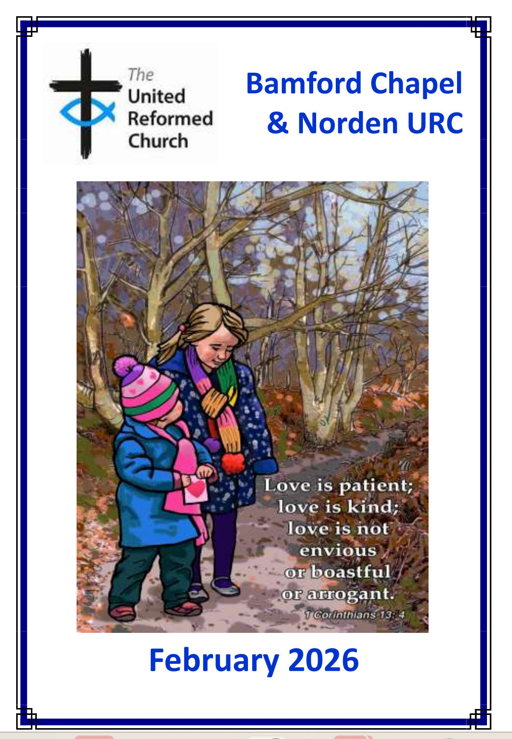 https://docs.google.com/document/d/1MfzmPZePnbuccuE3JHKKsgHVFzM9YTKVpsgC_cEKtcE/editAt Bamford Chapel and Norden URC we produce monthly magazines these can be viewed here on this page on the site. Please note the July & August and the December & January magazines are combined editions. For older magazines go to the Archive Link.